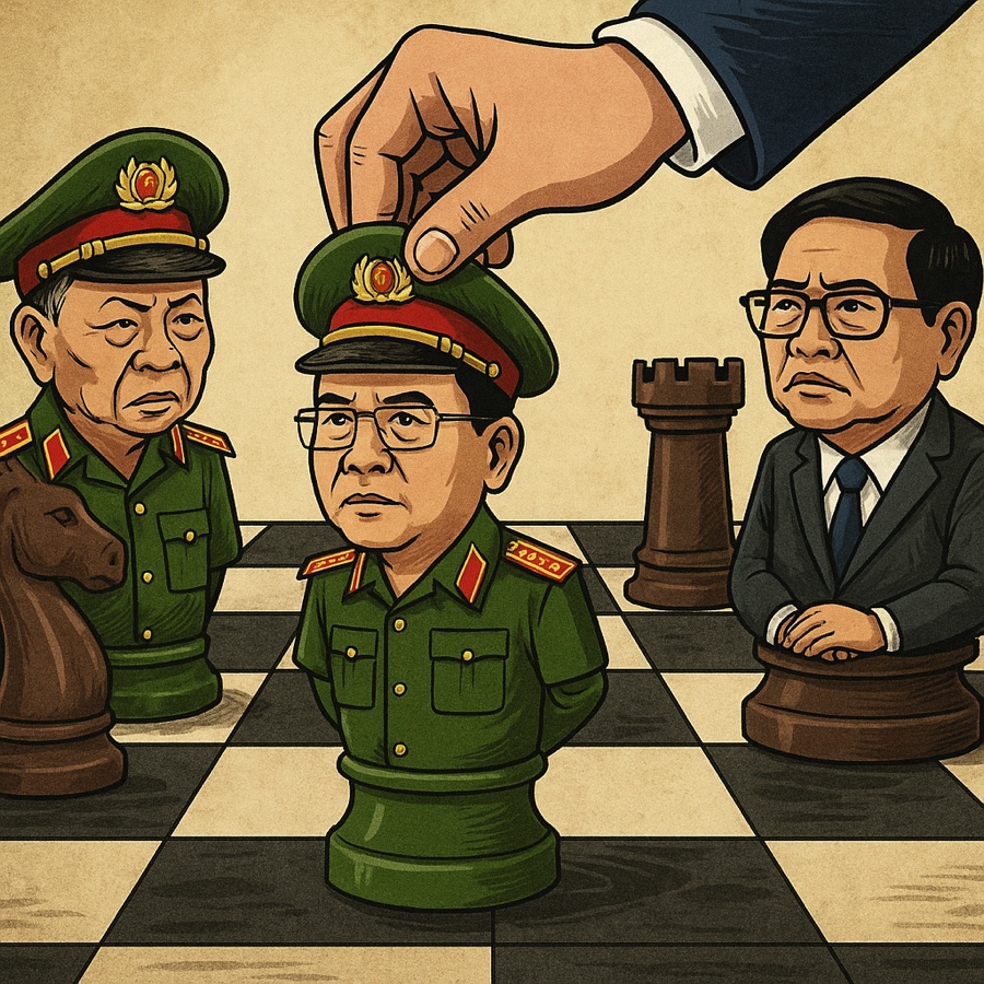 Cả cung đình bây giờ như sới vật. Một bên Công an của Tô Lâm giăng lưới từ trung ương xuống địa phương, đưa anh em Hưng Yên đi khắp nơi như trồng cây xanh đô thị. Một bên Quân đội thì sốt ruột, “thằng hàng xóm” cứ ngày càng phình to, trong khi mình lại teo tóp. Thế là phải tung quân bài Quang Ngọc cho có chỗ đứng.