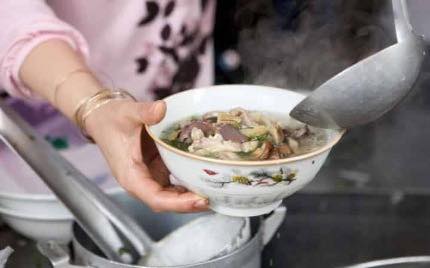Người đàn bà đứng nấu, đang tất bật với múc, chan. Mồ hôi nhể nhại. Nghe hắn gọi, không thèm ngó, sẳng giọng: