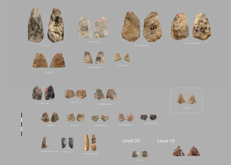 Các cuộc khai quật trước đây tại địa điểm này đã tiết lộ nhiều công cụ của người tiền sử, bao gồm các lưỡi dao mỏng và rộng, những lưỡi dao nhỏ...