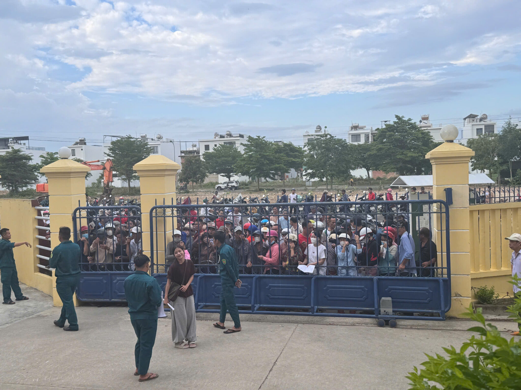 Nhiều người dân ở Nha Trang, tỉnh Khánh Hòa cũ, bị chặn lại ngoài hàng rào khi đến làm thủ tục để nhận 100,000 đồng do Nhà nước phát cho nhân Quốc Khánh 2/9 (Ảnh: Người Lao Động)