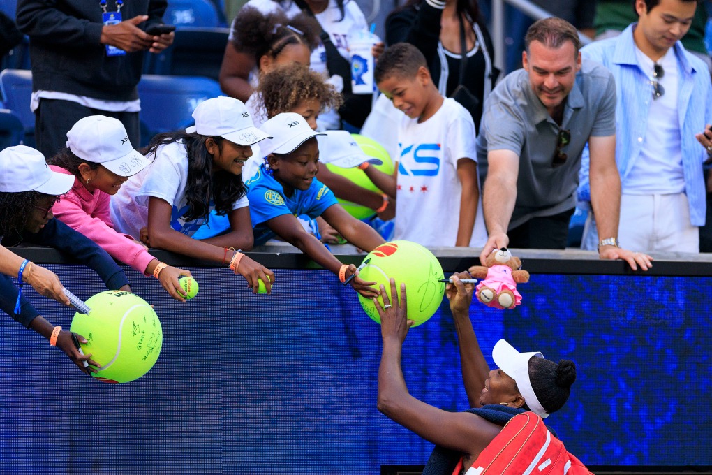 Sau trận, Leylah có hành động tinh tế khi nhường sân khấu cho người đàn chị, ra hiệu để tay vợt 45 tuổi tiến ra giữa sân thực hiện điệu xoay người và vẫy tay đặc trưng. Sau đó, Venus cũng đáp lại bằng cách để người đàn em thực hiện động tác tương tự trước sự cổ vũ nồng nhiệt của khán giả sân Louis Armstrong.
