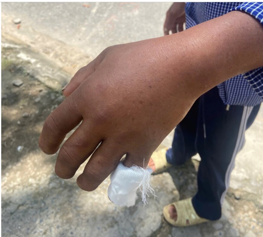 Bàn tay sưng to của ông G. do bị rắn độc cắn. Ảnh: DT