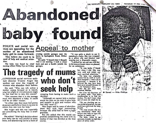 "Có ai còn nhớ vụ một đứa trẻ bị bỏ rơi vào tháng 2/1983? Đứa trẻ đó bây giờ là vợ tôi, và chúng tôi đang cố gắng tìm hiểu xem chuyện gì đã xảy ra với mẹ của cô ấy.