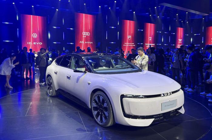 Mẫu Audi E5 Sportback - chiếc xe điện đầu tiên trong loạt sản phẩm do Audi hợp tác phát triển cùng hãng xe Trung Quốc SAIC – được giới thiệu tại sự kiện của Volkswagen ở Thượng Hải, Trung Quốc, ngày 22/4/2025. Ảnh: REUTERS/Zoey Zhang.