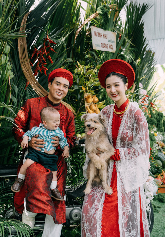 Không gian ngày trọng đại được bài trí theo phong cách truyền thống, cô dâu và chú rể diện áo dài đỏ đồng điệu. Trong ngày vui, Hồ Quang Hiếu khoe loạt ảnh bên bà xã và thông báo ngắn gọn: “Đón nàng về dinh”. Trong khi đó, Tuệ Như cũng hạnh phúc chia sẻ: “Em đã pha trà, cũng đã cắm hoa, chỉ chờ người qua, là tròn chữ nhà”.