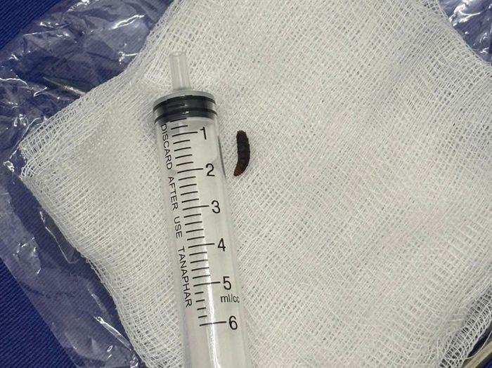 Con dòi còn sống được bác sĩ lấy ra từ trong tai cháu bé 14 tháng tuổi.