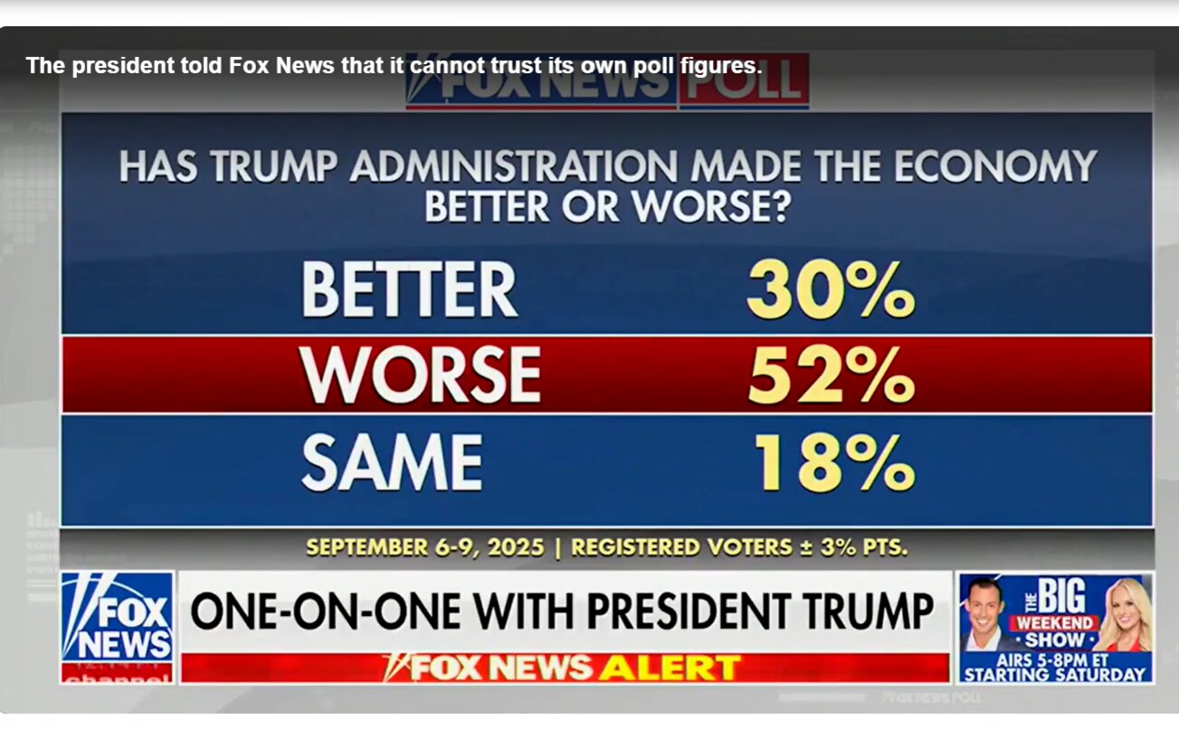 Được trình bày kết quả khảo sát cho thấy những thiếu sót được cho là của chính quyền ông trong việc phát triển kinh tế Hoa Kỳ, tổng thống cho biết những con số này là một lời buộc tội nhắm vào Fox News, chứ không phải ông.