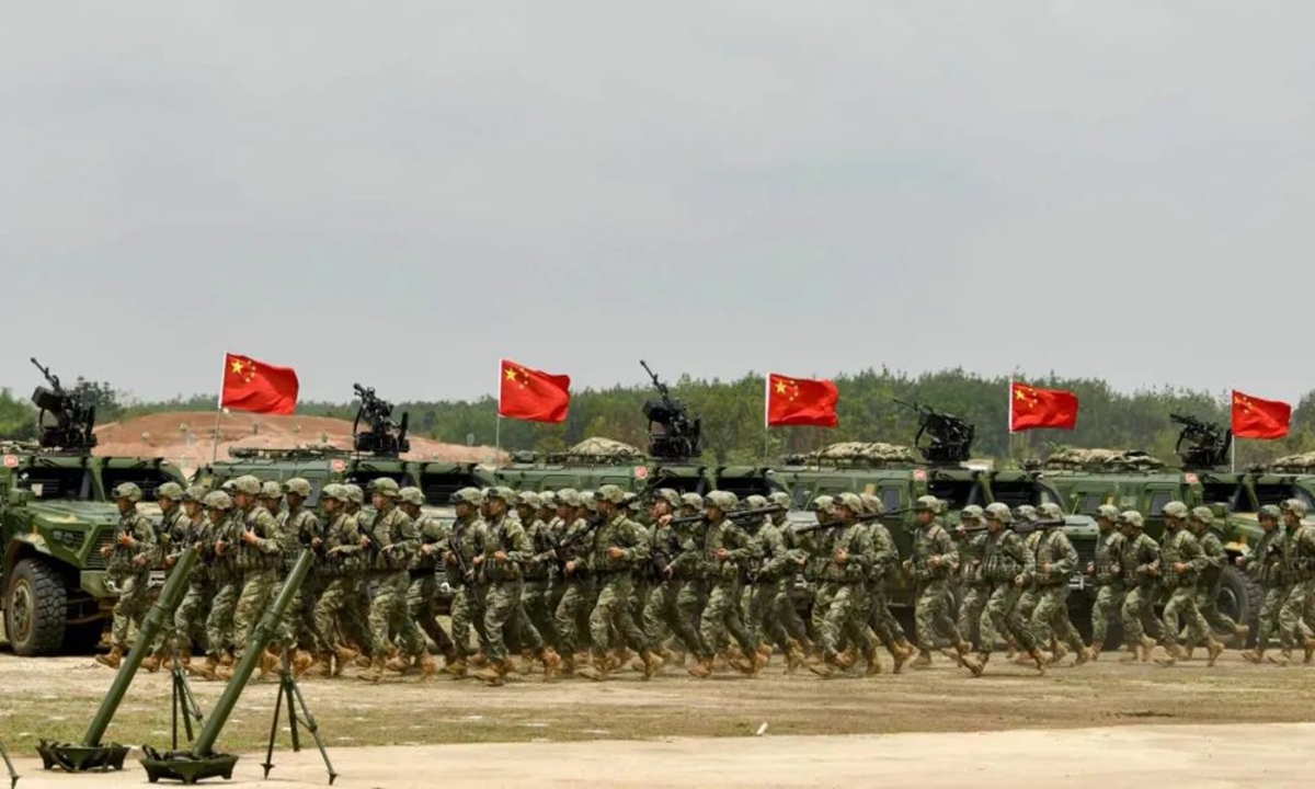 Quân đội Trung Quốc và Lào sau khi hoàn thành giai đoạn bắn đạn thật chung toàn diện tại một thao trường ở Lào vào ngày 26 tháng 5 năm 2023. Ảnh: Ảnh chụp màn h́nh từ tài khoản WeChat của Bộ Tư lệnh Chiến khu Nam, Quân đội Giải phóng Nhân dân Trung Quốc