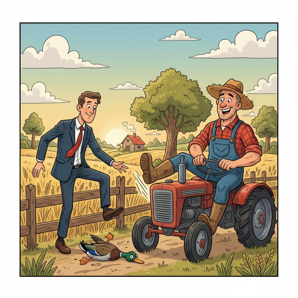 Ông ta bắn được một con vịt ... nhưng nó lại rơi vào một nông trại.