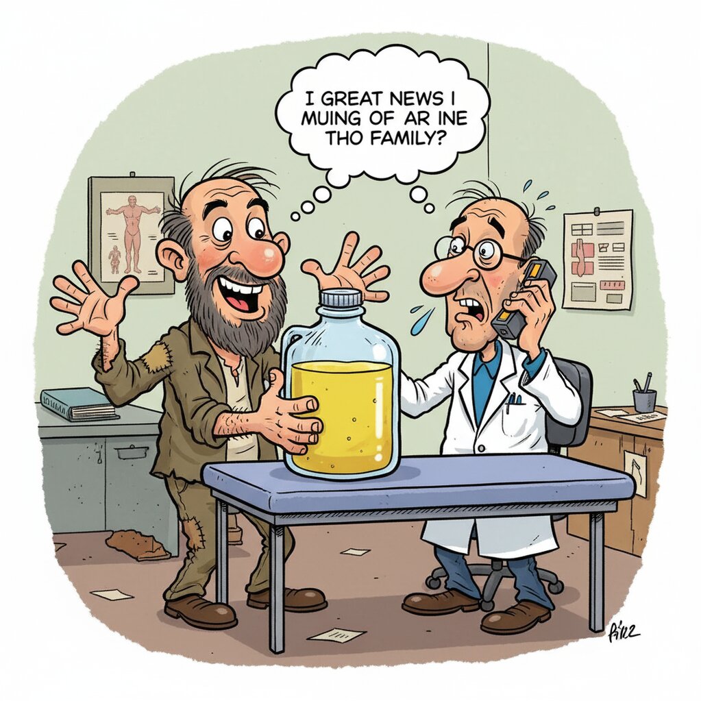 Bác sĩ yêu cầu anh ta mang đến một ít nước tiểu để kiểm tra.