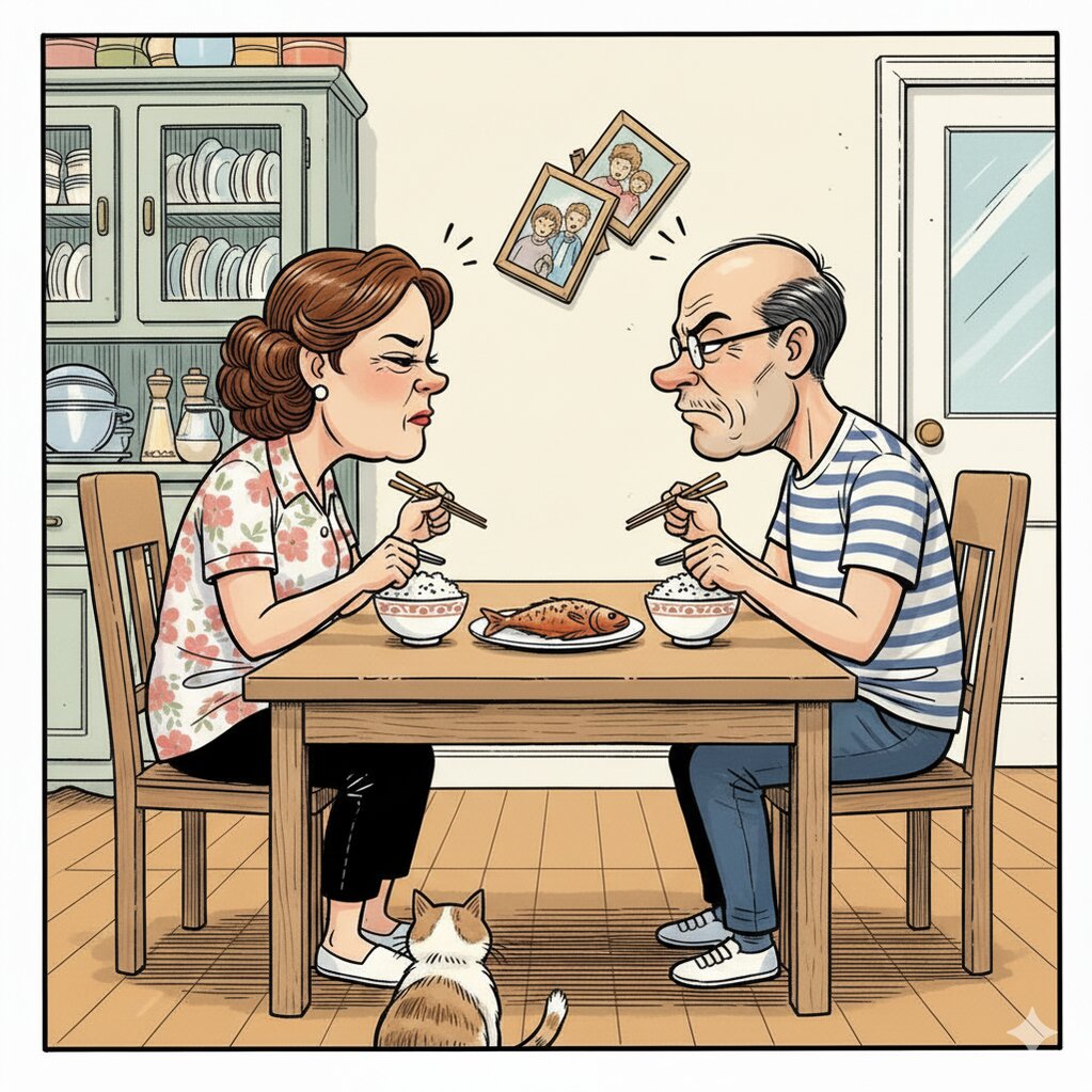 Hai vợ chồng giận nhau, quyết không thèm nói chuyện.
