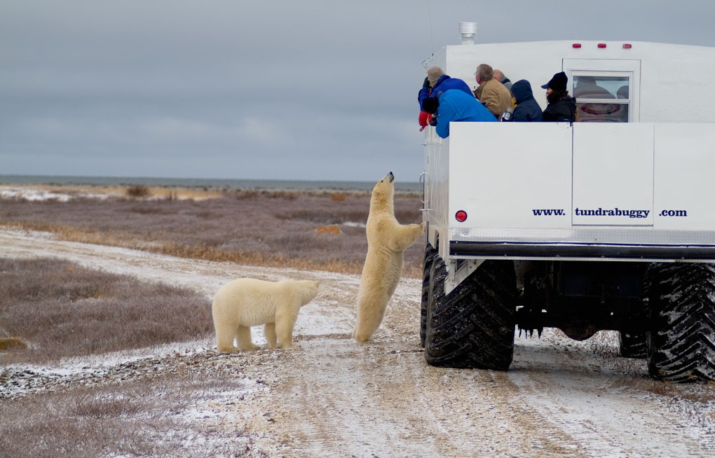 Hàng nghìn du khách từ khắp thế giới đổ về đây mỗi mùa thu. Họ trả tiền để ngồi trên những chiếc xe chuyên dụng khổng lồ Tundra Buggy, an toàn đi sâu vào vùng hoang dã để tận mắt chiêm ngưỡng những con gấu. Loài vật mà người dân địa phương luôn tìm cách né tránh lại là thứ mà du khách khao khát tìm thấy.