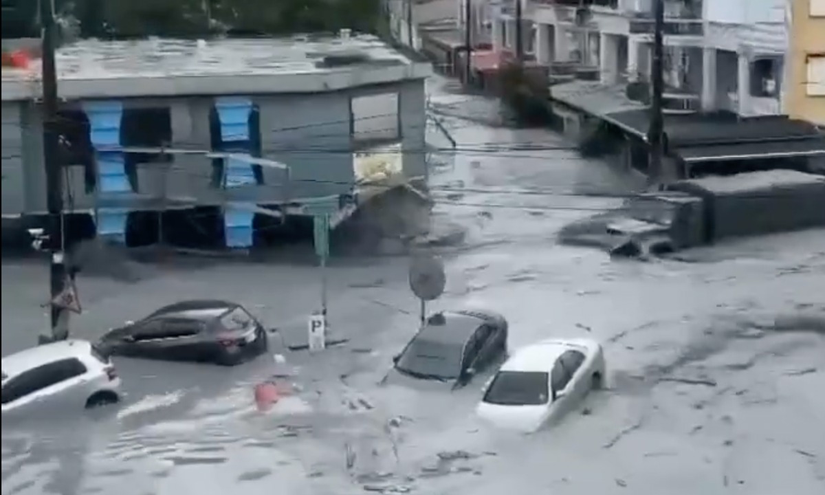 Video được chia sẻ trên mạng xã hội cho thấy dòng nước lũ đục ngầu chảy xiết trên các con phố, cuốn phăng những chiếc ôtô. Nước lũ ngập đến mái nhiều ngôi nhà và gây hư hại.