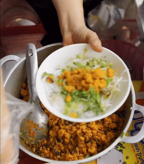 Khi khách đến quán và gọi món, chủ quán mới bắt đầu cho lần lượt các nguyên liệu vào bát, chan nước dùng nóng hổi lên trên rồi thêm ít tôm nõn xào khô và thịt cua chưng.