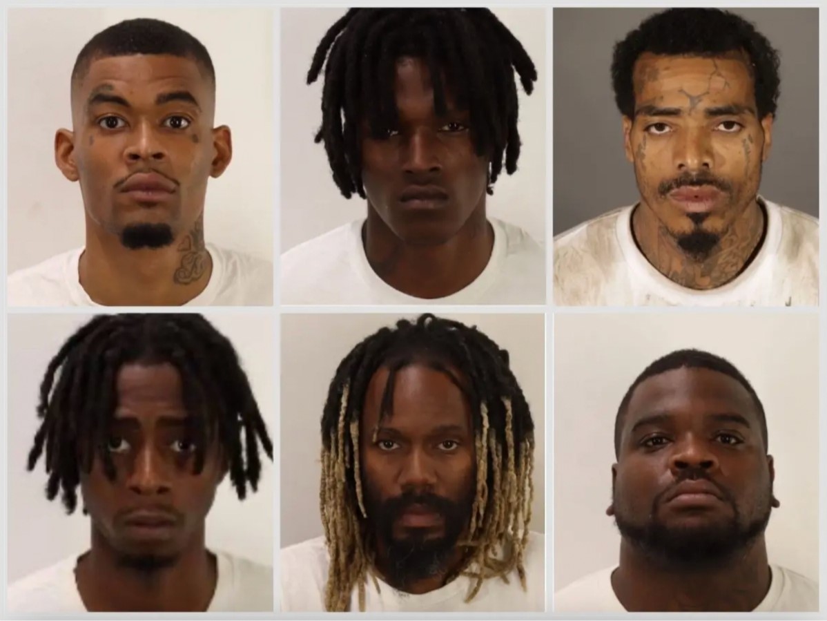 Cả 6 tên nghi can bị đưa vào trại giam Benoit Detention Center ở Indio với cáo buộc cướp của, phá hoại, ăn cắp tài sản lớn, đột nhập, phạm tội cướp dù đă từng bị kết tội trước đó, và đồng lơa, theo nguồn tin của giới cảnh sát.