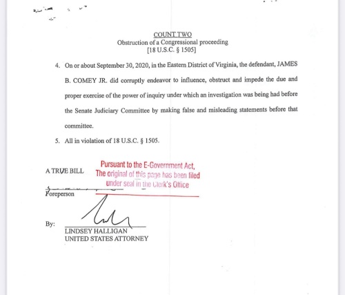 On Thursday evening, former FBI Director James Comey was indicted on two counts by a grand jury in the Eastern District of Virginia – false statements and obstruction.