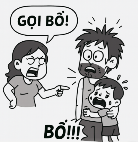 – Mày điên à? Tao bảo mày gọi điện gọi bố mày về ăn cơm, chứ không phải gọi cái ông kia là bố! Cái đứa con ngốc!