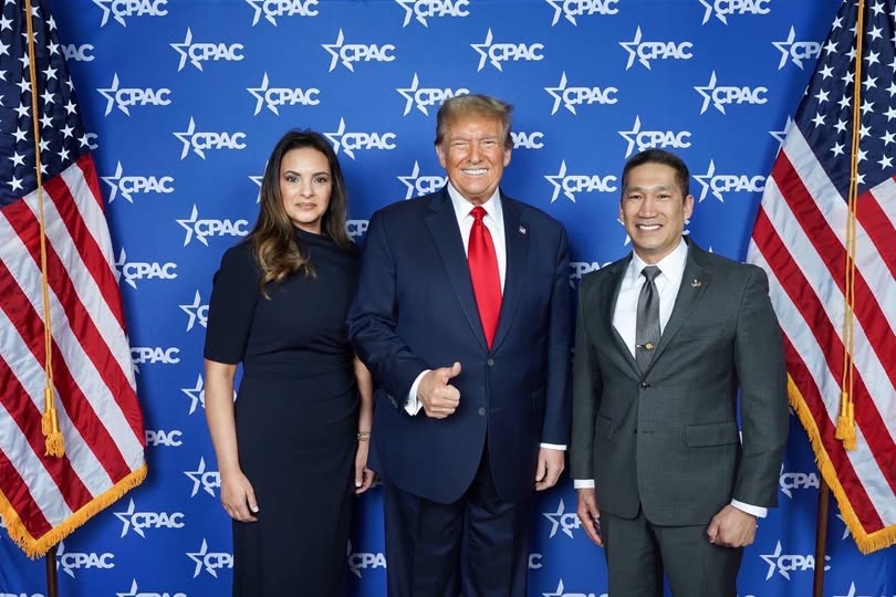 Vợ chồng ông Hùng Cao chụp cùng ông Donald Trump