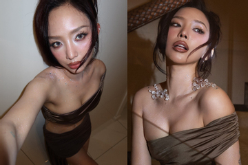 Bộ váy trễ vai lộ ra phần xương quai xanh quyến rũ cùng vòng eo săn chắc không chút mỡ thừa. Bước sang tuổi 36, có thể thấy Tóc Tiên đã luyện tập rất chăm chỉ để có được vóc dáng "căng đét" như hiện tại.