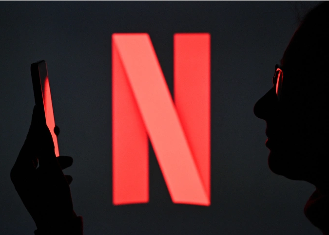Logo Netflix hiển thị trên màn chiếu. Ảnh: AFP