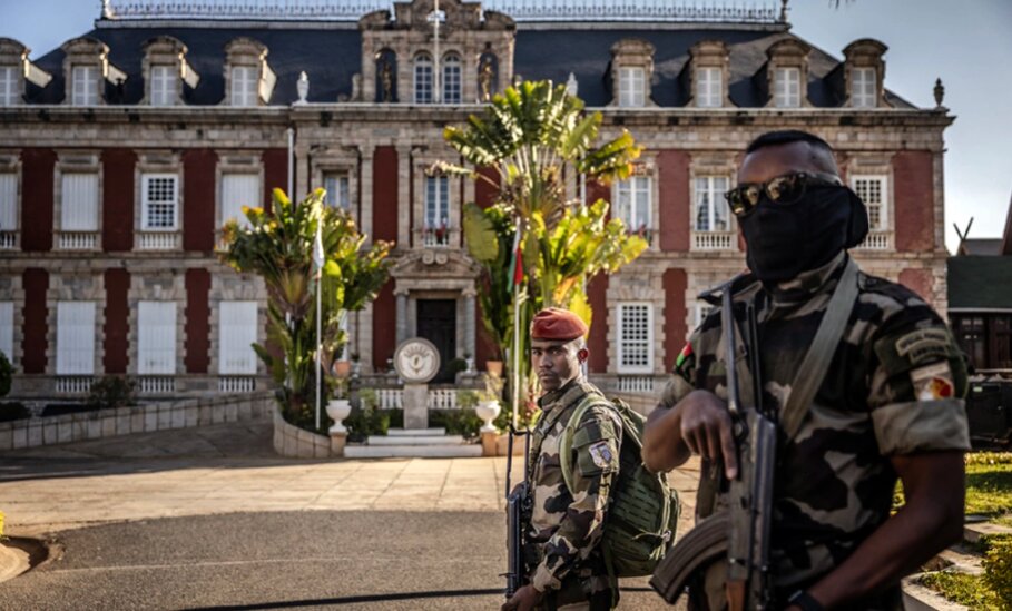 Binh sĩ Madagascar tại Văn phòng Tổng thống ở thủ đô Antananarivo ngày 14/10. Ảnh: AFP