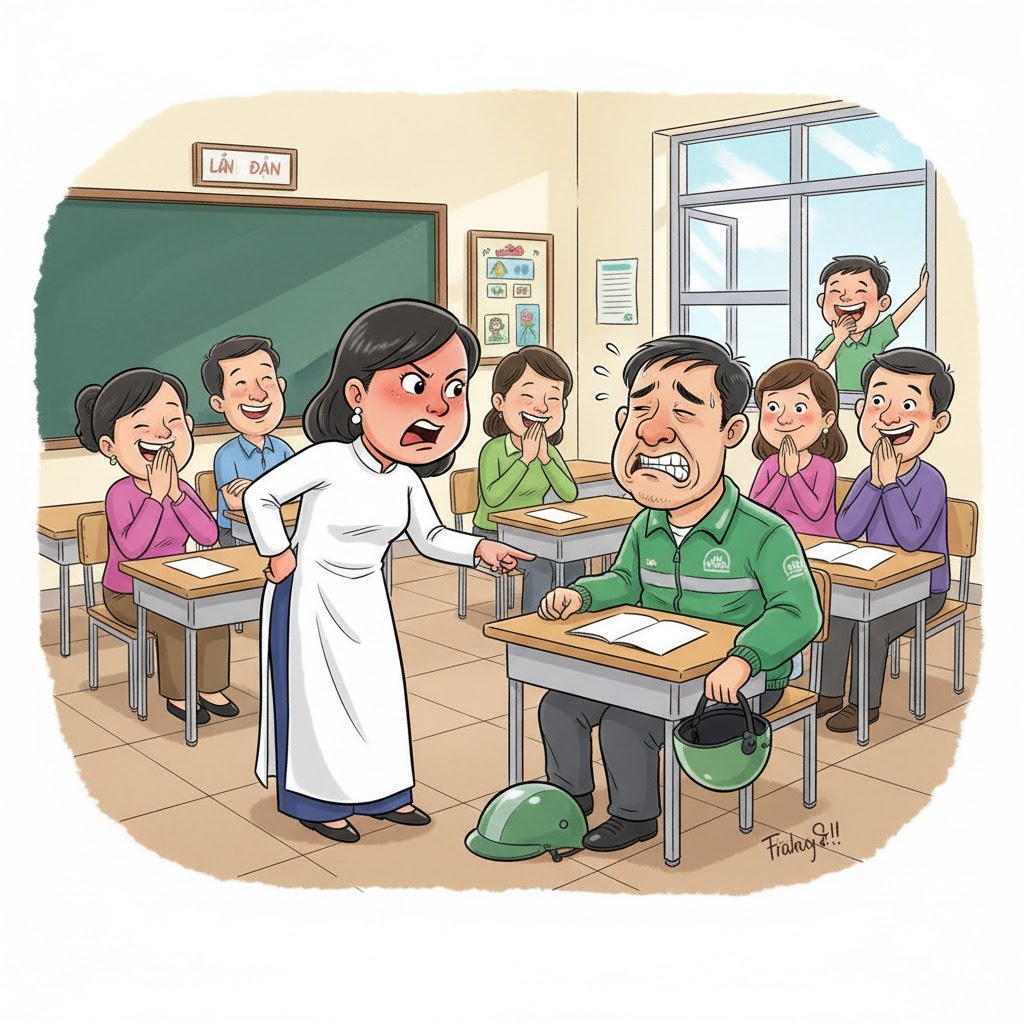 Đến khi cô giáo bước vào... em suýt té ghế!