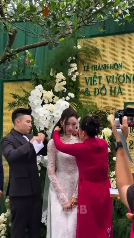 Trong suốt buổi lễ, doanh nhân Viết Vương liên tục dành cho vợ những cử chỉ ân cần, chăm sóc chu đáo khiến người hâm mộ không khỏi ngưỡng mộ. Khoảnh khắc bố ruột nàng hậu dắt tay con gái lên sân khấu và trao cho con rể được nhiều người ghi lại, trở thành hình ảnh xúc động nhất trong ngày trọng đại. Nhiều khán giả chia sẻ rằng, ánh mắt chứa chan tình cảm của ông dành cho con gái đã khiến họ không kìm được nước mắt.