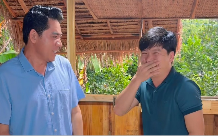 Diễn viên Huỳnh Anh Tuấn nói như Việt kiều khiến trợ lý không nhịn được cười. Ảnh: Chụp từ clip