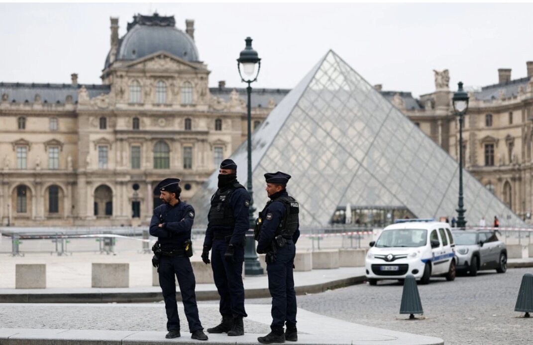 Cảnh sát đứng ngoài Bảo tàng Louvre hôm 19/10. Ảnh: Reuters.