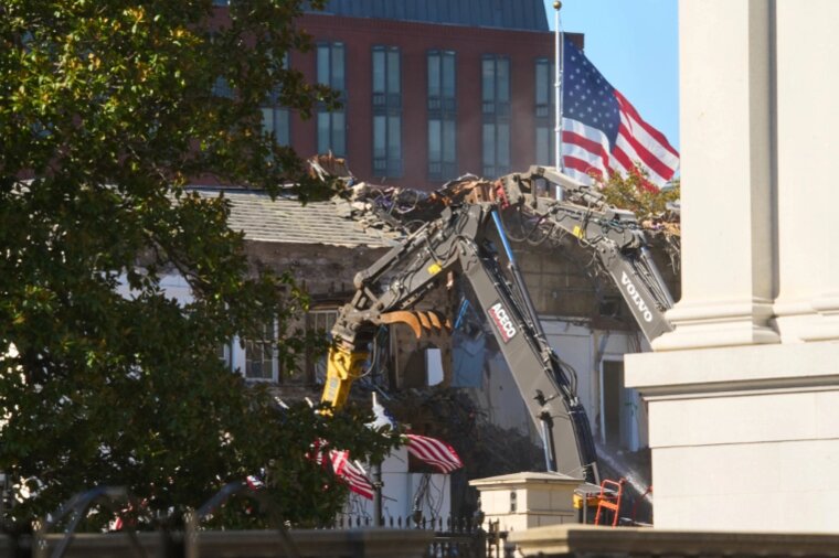 Hoạt động phá dỡ tại Cánh Đông Nhà Trắng ngày 21/10. Ảnh: AP
