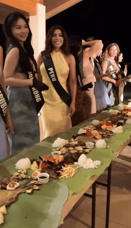 Thực tế, năm 2023, Miss Earth cũng từng tổ chức một buổi tiệc tương tự, khi các thí sinh cùng ngồi ăn lá chuối theo phong cách “boodle fight”, tượng trưng cho tinh thần đoàn kết.