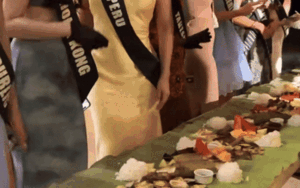 Old  Default Cuộc thi hoa hậu gây sốc: Thí sinh ăn bốc bằng tay, món bày trên lá chuối