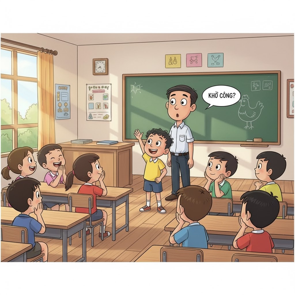 Trong giờ học, thầy giáo hỏi học sinh: