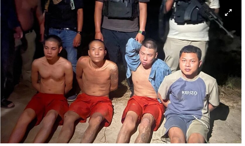 4 nghi phạm khi bị bắt hôm 18/11. Ảnh: Khmer Times.