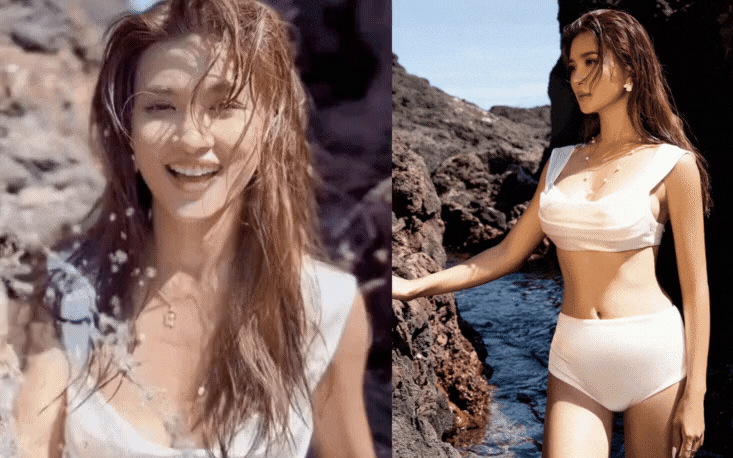 Kim Tuyến khiến người xem khó có thể rời mắt với giao diện gợi cảm, mái tóc ướt trong bộ bikini màu trắng. Làn da bóng khỏenổi bật dưới ánh nắng, tôn trọn từng đường cong mềm mại, và quyến rũ. Thiết kế bikini tối giản càng làm nổi bật vòng eo gọn gàng, đôi chân thon dài và vóc dáng cân đối của bà mẹ 1 con. Bên cạnh hình thể quyến rũ, nụ cười tươi tắn của Kim Tuyến chính là điểm khiến bức hình trở nên cuốn hút gấp bội: rạng rỡ, trẻ trung và đầy năng lượng. Ánh mắt cuốn hút, thần thái tự tin giúp cô toát lên vẻ đẹp vừa hiện đại vừa nữ tính, rạng rỡ bừng sáng cả khung hình.
