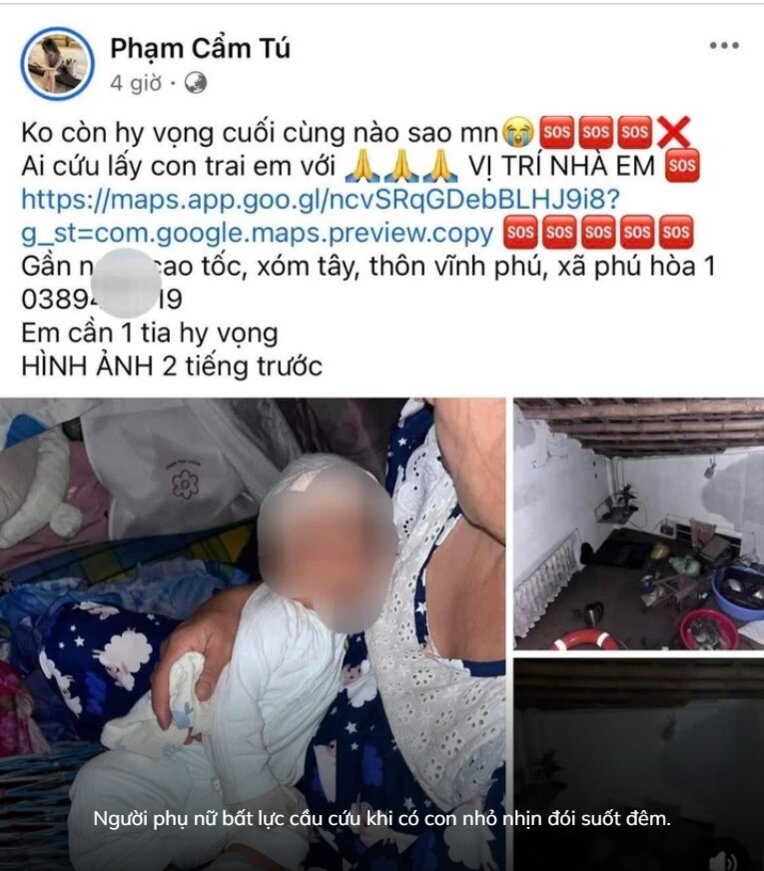 Người phụ nữ bất lực cầu cứu khi có con nhỏ nhịn đói suốt đêm.