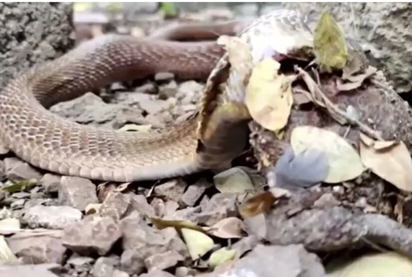 Một chủ nhà ở Pune, bang Maharashtra (Ấn Độ), đã trải qua khoảnh khắc “nổi da gà” khi phát hiện con rắn hổ mang đang nuốt chửng một con ếch cỡ lớn ngay giữa sân.