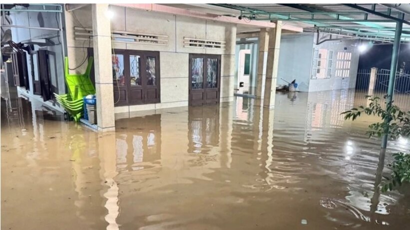 Nhiều khu vực nước ngập đến nửa căn nhà. Ảnh: VOV.VN