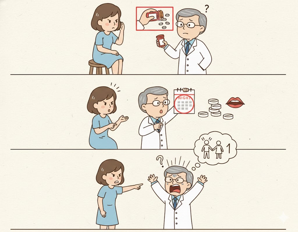 – Thì bác sĩ chứ ai! Bác sĩ bảo mỗi lần sinh hoạt thì uống một viên mà…