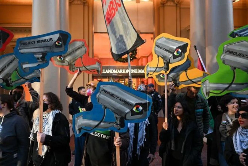 Bảy năm trước, các nhân viên Google biểu tình chống dự án Nimbus, ủng hộ người Palestine. Ảnh: NetEase.