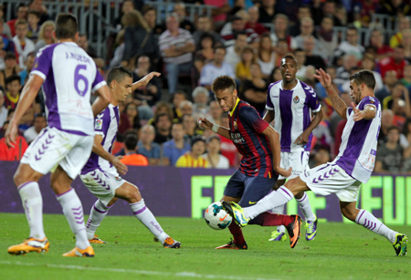 Không có Lionel Messi, Barcelona vẫn dễ dàng đánh bại Valladolid 4-1 tại Nou Camp để đạt 24 điểm tuyệt đối sau vòng 8 La Liga. Các bàn thắng của CLB xứ Catalan được ghi do công Xavi, Alexis Sanchez (2 bàn) và Neymar.