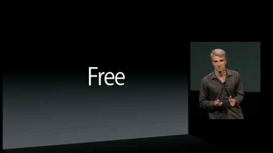 "Hôm nay chúng tôi sẽ làm một cuộc cách mạng về giá cả", phó chủ tịnh cao cấp phụ trách phần mềm của Apple, Craig Federighi, cho biết ngay trước khi tuyên bố rằng Apple sẽ cung cấp miễn phí OS X Mavericks, phiên bản mới nhất của hệ điều hành cao cấp dành cho các máy tính Mac.