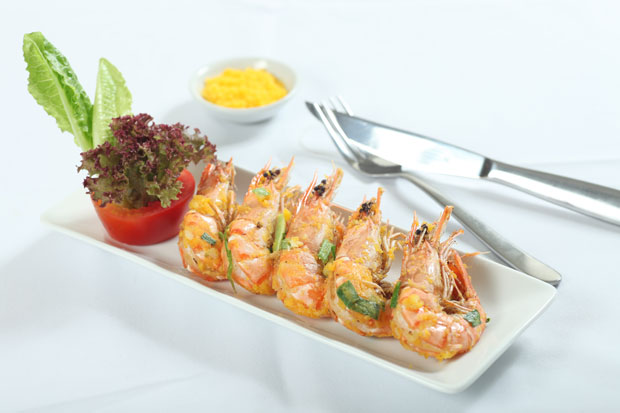 Tôm rửa sạch, dùng kéo cắt sống lưng, bỏ chỉ đen. Chiên tôm ngập dầu vừa vàng vớt ra thấm ráo dầu. Trứng muối luộc chín, lấy lòng đỏ tán mịn. Phi vàng hành lá cắt nhỏ, tỏi, hành tím. Cho tôm vào xóc đều với lòng đỏ trứng muối cho trứng bao đều tôm là được. Có thể chấm tôm với tương ớt.
