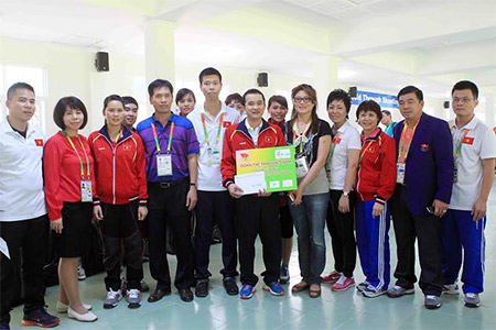 Lãnh đạo đoàn thể thao Việt Nam có mặt kịp thời để trao thưởng nóng cho Thành Đạt