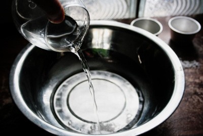 Chuẩn bị một cái bát hoặc thố lớn, cho nước, giấm gạo, đường