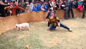 "Bịt mắt bắt lợn" đã từ lâu trở thành một trong những trò chơi xuân không thể thiếu của vùng quê đất Nghệ An. Hãy cùng xem những pha ấn tượng nhất của trò "Bịt mắt bắt lợn" năm nay.