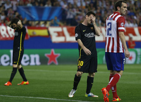 Barcelona cũng “dính đòn” trước trong trận đấu với Atletico, nhưng đáng tiếc Martino không phải là Ancelotti hay Guardiola. Chiến lược gia người Argentina phản ứng rất chậm sau khi bị đối thủ chọc thủng lưới, thậm chí những phản ứng rất yếu ớt. Bằng chứng rõ ràng nhất là Martino không dám mạo hiểm rút một Messi thi đấu rất nhợt nhạt ra khỏi sân (cả trận chỉ di chuyển 6.72km, nhiều hơn mỗi thủ môn Pinto). Hệ quả là Barca không thể tạo ra áp lực lên phía khung thành Atletico, những đợt tấn công diễn ra với tốc độ và cường độ rất thấp.