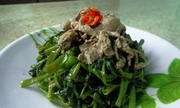 Rau muống xào chao với thịt bò. Ảnh: Lê Hà Ngọc Trâm.