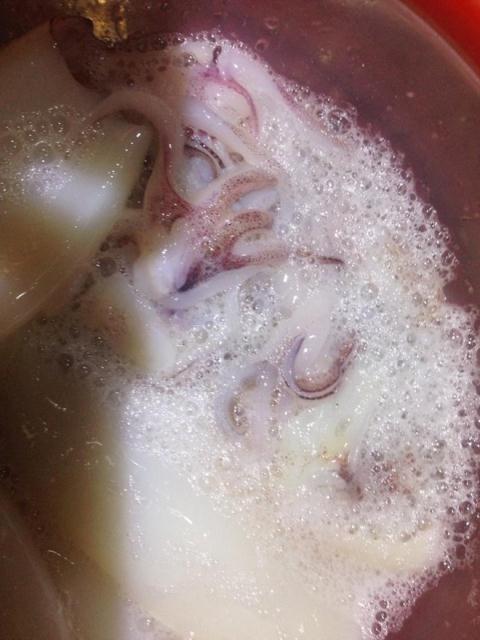 Chị Giang bức xúc: “Chỗ mua là người quen thân, quảng cáo là mực tươi ngon, mình to, dầy, 4 con 1 kg. Vậy mà mua về rửa mãi vẫn không hết nhớt, nước lại đục và sủi bọt như xà phòng, cảm thấy không yên tâm nên tôi đành vứt bỏ".
