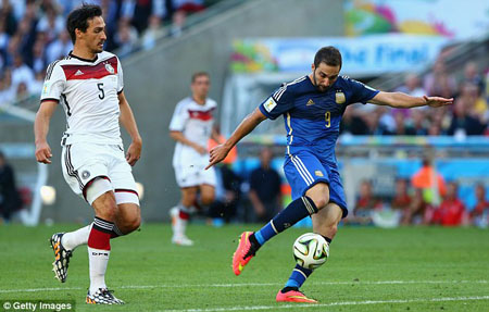 Dù nhận được nhiều kỳ vọng nhưng Higuain lại tỏ ra lúng túng ở trận chiến sinh tử với đội tuyển Đức. Trong đó, có pha bỏ lỡ vô cùng đáng tiếc. Tờ Daily Mail đã đánh giá tiền đạo này tệ nhất trận đấu.